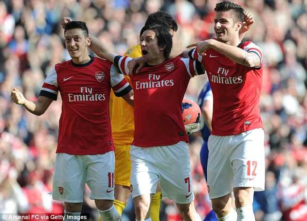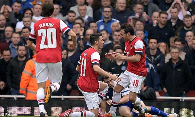 Cazorla ăn mừng cùng Ozil