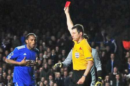 Chỉ 10 tháng trước, trong trận bán kết lượt về với Barcelona ở Stamford Bridge, Drogba đã chửi thẳng vào mặt trọng tài chính Tom Henning Ovrebo, người đã bắt cực kỳ tệ và bỏ lỡ 3 quả penalty của Chelsea. Drogba đã gọi Ovrebo là: “Một sự ô nhục ngu ngốc”. Didier không phải nhận thẻ phạt nhưng UEFA vẫn quyết định treo giò anh 3 trận, kèm theo 1 trận án treo.