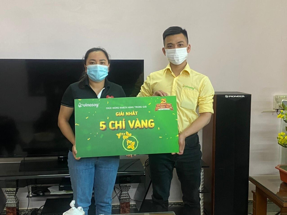 Các khách hàng trúng vàng trong chương trình “25 năm Dinh dưỡng vàng – Rộn ràng tri ân” do Công ty Sữa đậu nành Việt Nam Vinasoy tổ chức.