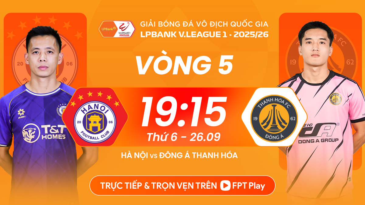 Hà Nội đấu với Thanh Hóa là trận đấu sớm nhất vòng 5 giải V.League 2025-2026. Trận đấu diễn ra lúc 19h15 ngày 26/9, được phát sóng trực tiếp trên hệ thống của FPT Play (gồm ứng dụng FPT Play, website fptplay.vn) và TV360. Báo Điện tử VTC News cập nhật đầy đủ diễn biến, tỷ số trận đấu Hà Nội vs Thanh Hóa.