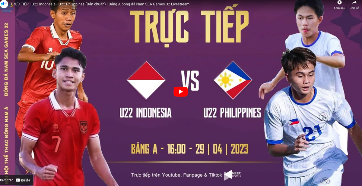 Xem trực tiếp Indonesia vs Philippines - Bảng A bóng đá nam SEA Games 32