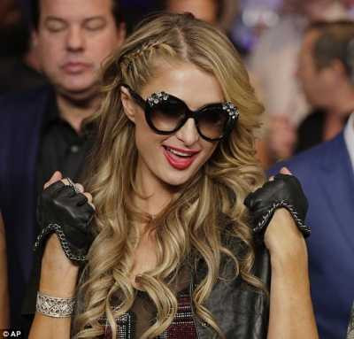 | Kiều nữ Paris Hilton cũng góp mặt cổ vũ cho 2 siêu võ sĩ (Ảnh: AP) |