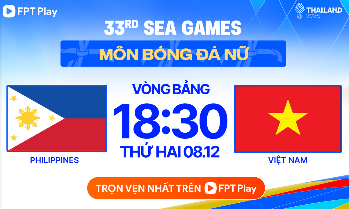 Đội tuyển nữ Việt Nam đấu với Philippines ở lượt trận thứ hai bảng B môn bóng đá nữ SEA Games 33. Trận đấu được chiếu trực tiếp trên ứng dụng FPT Play, website fptplay.vn, kênh YouTube "FPT Bóng đá Việt" và kênh truyền hình VTV5 Tây Nguyên. Báo Điện tử VTC News cập nhật đầy đủ diễn biến, tỷ số trận đấu giữa đội tuyển Việt Nam và Philippines.