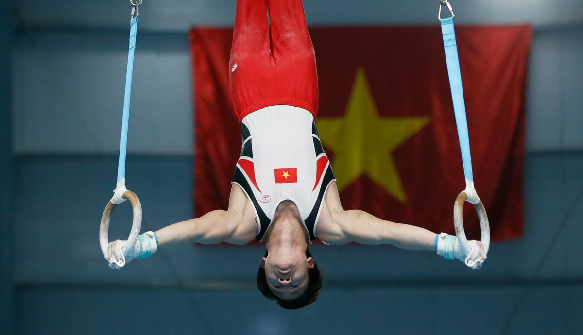 Màn biểu diễn của Nguyễn Văn Khánh Phong ở nội dung vòng treo
