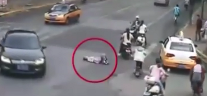 Vụ việc xảy ra ở thành phố Quảng Châu, tỉnh Quảng Đông, Trung Quốc. Đoạn clip ghi lại cảnh người đàn ông nằm lăn ra đường, vờ bị tai nạn để ăn vạ liên tiếp 6 lần nhưng đều không thành.
