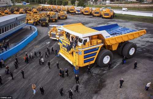 Chiếc xe tải mới được sản xuất cao 8m, dài hơn 20m và sức tải lên đến 450 tấn, tương đương 37 chiếc xe bus 2 tầng .