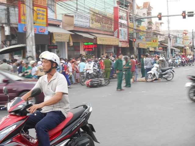 Khi đến trụ đèn tín hiệu giao thông đã xảy ra va chạm với xe máy của anh Phạm Thanh Sang (25 tuổi, quê Đồng Tháp) khiến anh Sang ngã vào hông xe, bị bánh xe sau chèn qua người chết tại chỗ.
