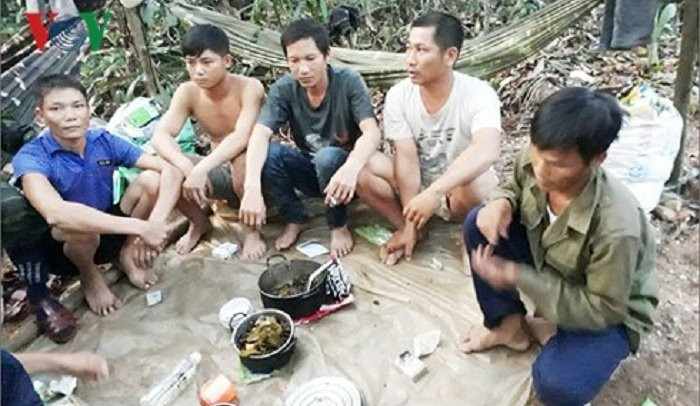 Các đối tượng bị bắt giữ khi đang phá rừng tại tỉnh Quảng Bình.