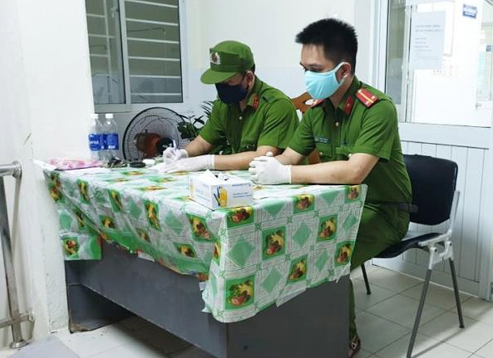 Lực lượng công an làm nhiệm vụ tại khu cách ly thuộc Trung tâm Y tế quận Hải Châu, Đà Nẵng.