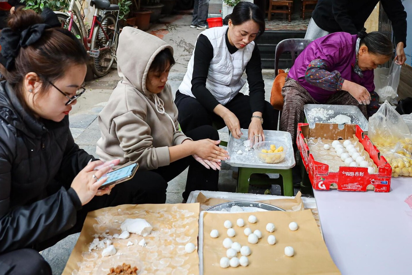 Khắp các khu chợ, dãy phố, nơi nào cũng thấy cảnh tiểu thương tất bật nặn bánh.