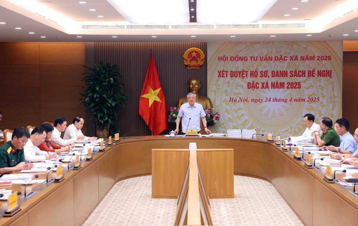 Theo Báo điện tử Chính phủ, chiều 24/4, Phó Thủ tướng Thường trực Nguyễn Hòa Bình, Chủ tịch Hội đồng tư vấn đặc xá năm 2025 (Hội đồng) chủ trì cuộc họp Hội đồng để xét duyệt hồ sơ, danh sách đề nghị đặc xá năm 2025 nhân dịp kỷ niệm 50 năm ngày Giải phóng miền Nam, thống nhất đất nước.
