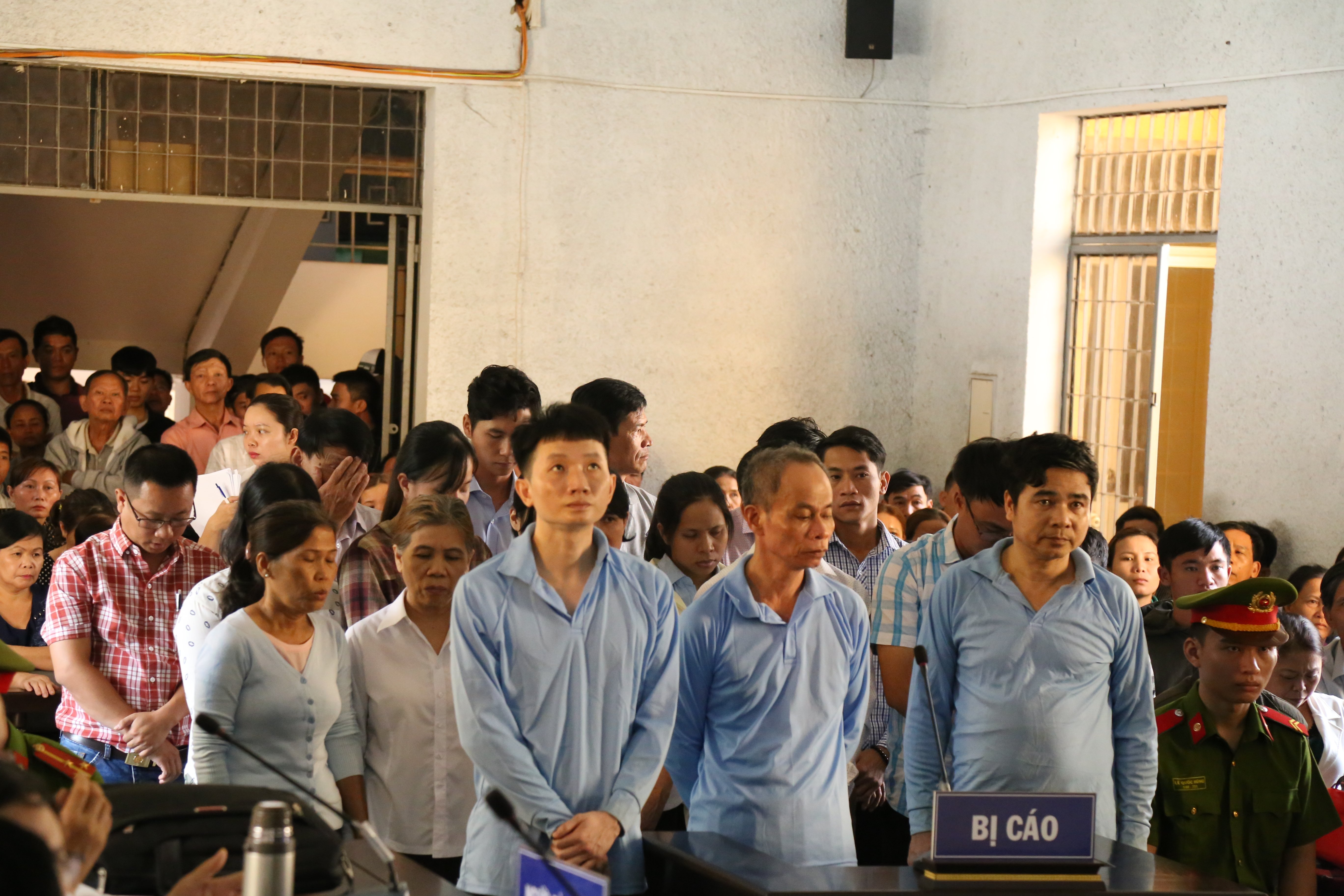 Hàng chục bị cáo và bị hại tại phiên tòa.