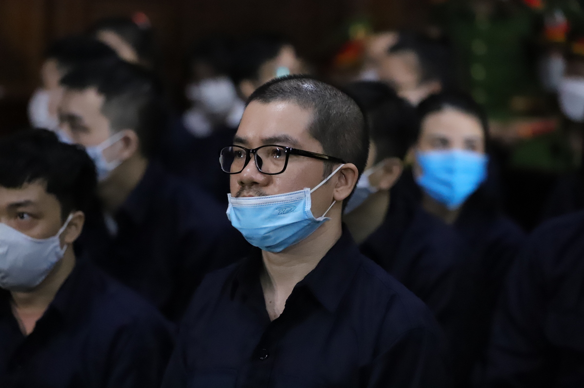 Nguyễn Thái Luyện và 22 đồng phạm tại phòng xử án.