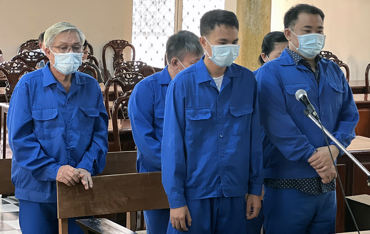 Các bị cáo, gồm: Vũ Văn Quý (32 tuổi, ngụ TP.HCM), Ngô Văn Trọng (50 tuổi, ngụ Quảng Ngãi), Hoàng Thị Tâm (56 tuổi, ngụ Hà Nội), Đào Ngọc Cảnh (76 tuổi, ngụ TP Đà Nẵng), bị xét xử tội “Lừa đảo chiếm đoạt tài sản”.