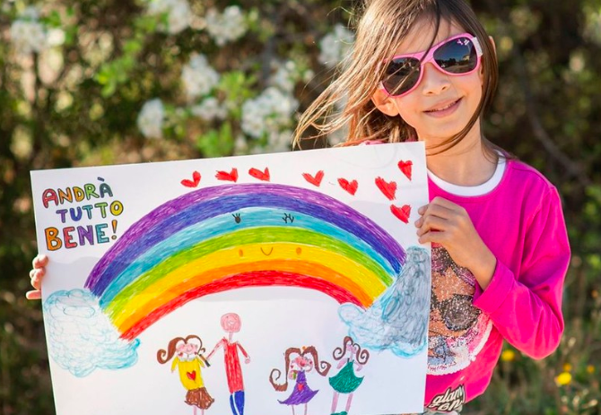 Phong trào các em bé Italy vẽ cầu vồng.