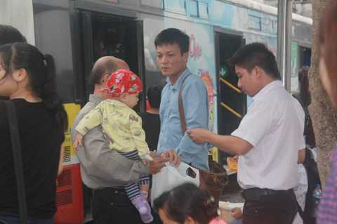 Sáng 8/4, chúng tôi cùng ông Thụy nhẫn nạichờ Lệ bế con đến. Rất nhiều các chị bán hàng nước, bánh mì dạo… ở bếnxe Giáp Bát cũng kiên nhẫn chờ đợi.