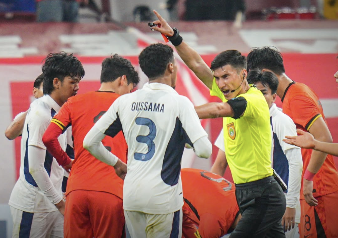 Video trọng tài Maimeitijiang rút thẻ đỏ với Oussama Thiangkham và Xuan Zhijian