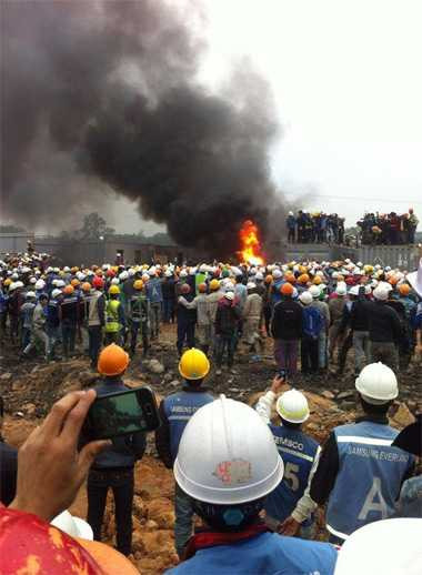 Khi các bảo vệ bỏ chạy, các công nhân đã đốt hơn 20 chiếc xe máy và 3 container là nơi ở của các bảo vệ.