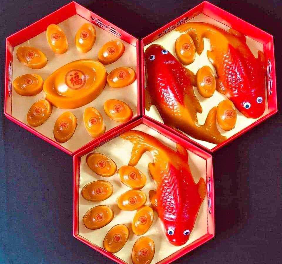 Ngoài bánh trôi, thạch cá chép các loại xôi, bánh tổ hình cá chép cũng vẫn được người tiêu dùng lựa chọn. Những con cá chép giả được làm nguyên liệu từ gạo nếp, đúc khuôn khá công phu với màu sắc đẹp, trang trí cầu kỳ bắt mắt. Chè cá chép là nhân đậu xanh, còn xôi cá chép làm nhân nấm thịt. Sau khi cúng, người mua có thể thưởng thức được luôn.