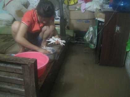 | Cảnh nhếch nhác trong phòng trọ ngập nước của sinh viên. Ảnh: D.N. |