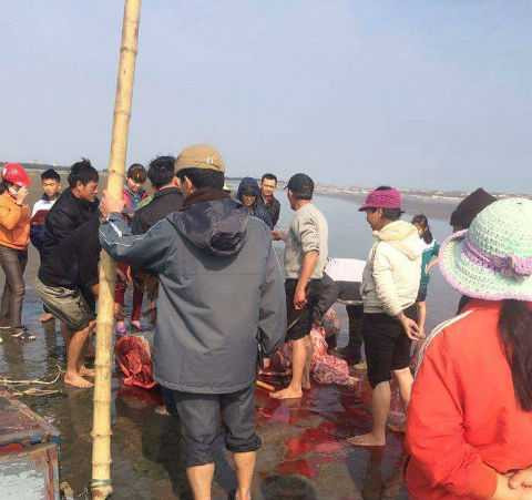 Mới đây, trên mạng xã hội facebook đang lan truyền nhiều bức ảnh chụp lại cảnh người dân xẻ thịt cá voi ngay tại bãi biển được cho là ở xã Hải Đông, huyện Hải Hậu, tỉnh Nam Định.