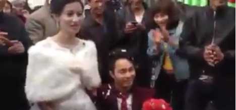 | Đám cưới cổ tích của cô dâu xinh đẹp và chú rể lùn - Ảnh chụp từ clip |