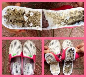 Theo một cư dân mạng chia sẻ: "Hôm qua từ Hà Nội về thì bác hàng xóm nói đi dép bị tê chân, cưa ra bên trong toàn có nước thuốc. Mẹ mình về lôi ngay dép em gái ra cưa và kết quả là như thế này đây. Đi dép này một thời gian sẽ tê chân, em gái mình gần đây đi dép này cũng rất hay bị chuột rút.".