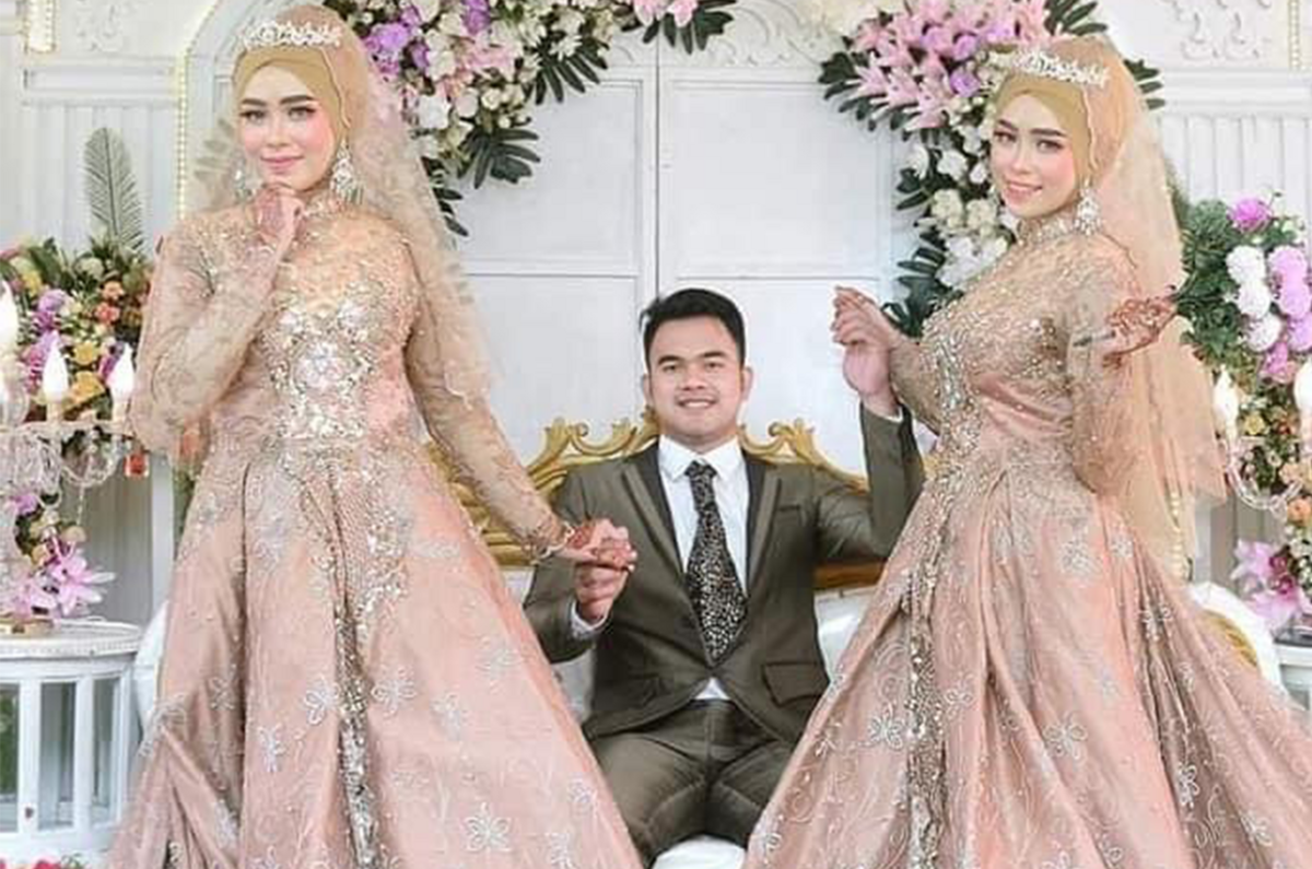 Theo thông tin chia sẻ, cặp song sinh tên là Sella và Selly đã tiến hành lễ kết hôn với cùng một chàng trai tên là Nanda. Cả hai đều rất tươi tắn, rạng rỡ trong bộ ảnh cưới, không chút gì cho thấy sự bất ổn với thực tế là họ đang có chung một người chồng.
