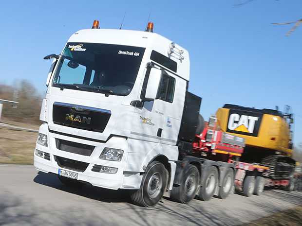 Theo tìm hiểu của phóng viên, loại xe đầu kéo này thuộc dòng TGX XXL của thương hiệu xe tải Đức MAN. Đây là loại đầu kéo có khả năng chuyên trở máy móc thuộc dạng khủng nhất trên thế giới. Ảnh Văn Lộc