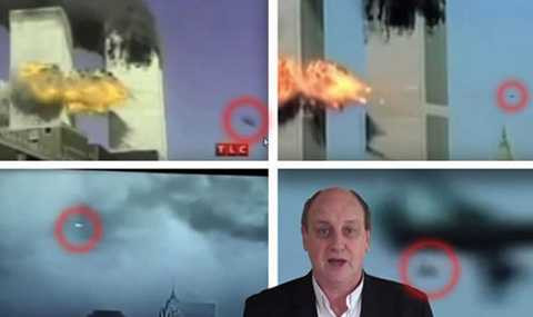 Trang NewsnotshownonTV.com công bố đoạn video ngắn kỳ lạ này. Video cho thấy có một vật thể giống UFO xuất hiện trong vụ khủng bố kinh hoàng 11/9.