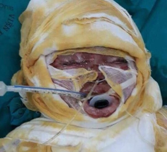 Hôm nay, bác sĩ lại cho lắp lại ống thở và cho biết con bé đủ điều kiện sức khỏe để cấy ghép da. Theo phác đồ điều trị của các bác sĩ, sắp tới, những phần da bị tổng thương sâu như cách tay, ngực và mặt của con gái tôi sẽ lấy phần da tốt bên chân phải và trái ghép vào”.