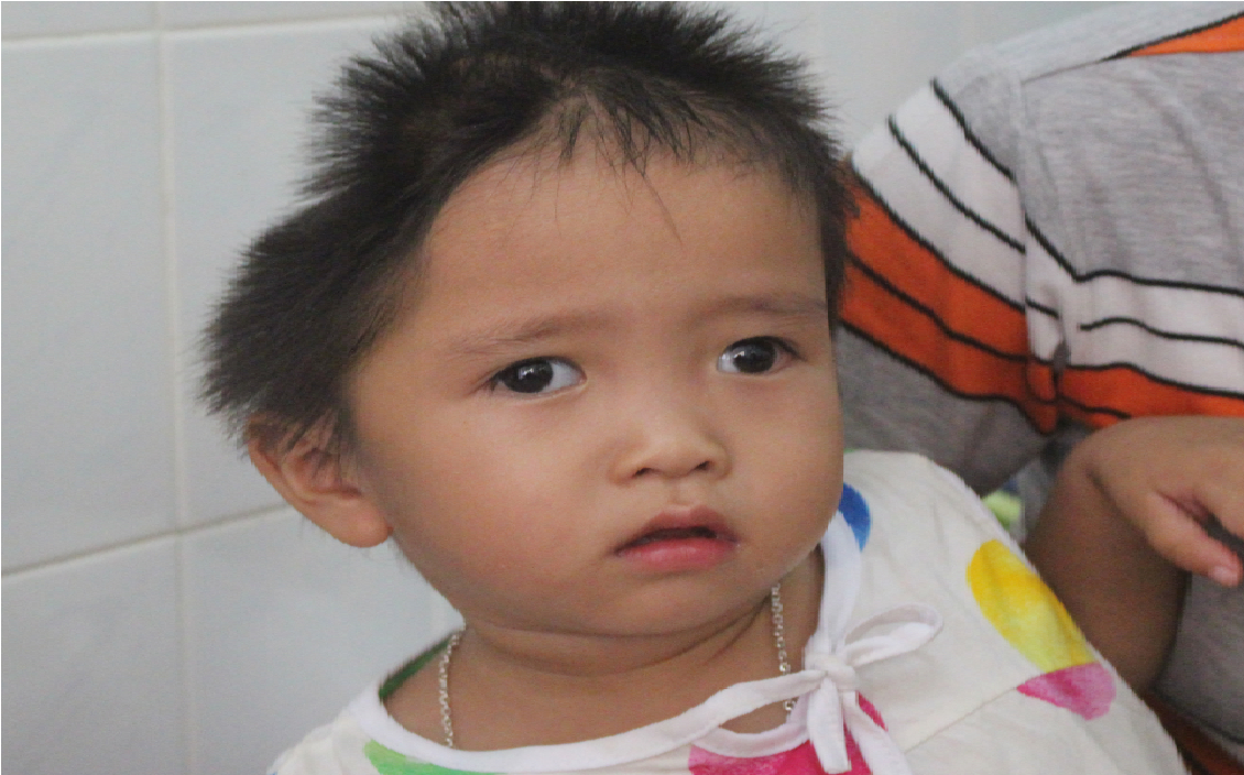 Nhìn gương mặt đáng yêu của Bảo Trâm, ai cũng xót xa khi chỉ hơn 2 tuổi nhưng em đã mang trong mình 2 căn bệnh quái ác là tim bẩm sinh và não úng thủy - căn bệnh khiến cho đầu em bị móp hẳn vào một bên.