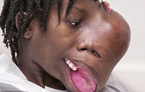 Tuy nhiên, sau nhiều năm phát triển khối u ác tính làm cho khuôn mặt bé gái đáng thương này gần như biến dạng toàn bộ.