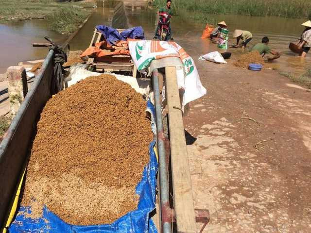 Thậm chí nhiều gia đình lúa đã gặt về nhưng gặp mưa không thể phơi khiến lúa bị đen mốc, nảy mầm. Người dân phải đưa lúa thóc ra sông rửa nhằm cố cứu lấy số lúa thóc này nhưng đa phần đã hư hỏng, không thể sử dụng được nữa.