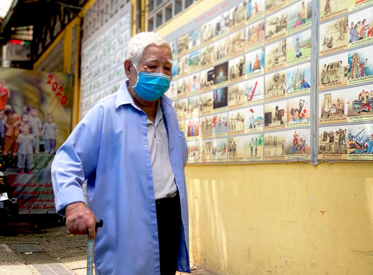 Cụ Trần Thanh Nhân (81 tuổi, ngụ Phường 7, quận Gò Vấp, TP.HCM) đi tìm tro cốt 3 người thân được gửi tại chùa Kỳ Quang 2.