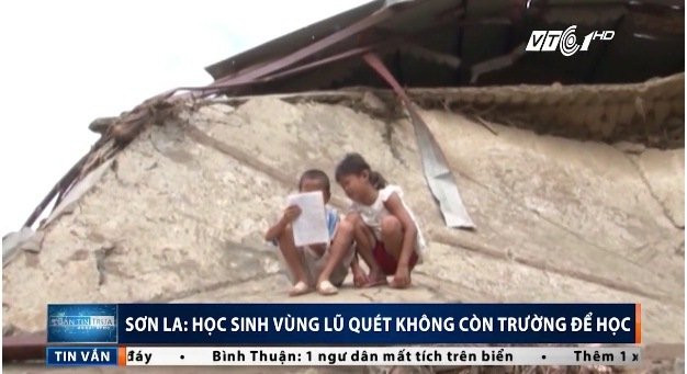 Xót xa lũ đánh sập trường, trẻ em Sơn La ngồi ôn bài bên đống đổ nát