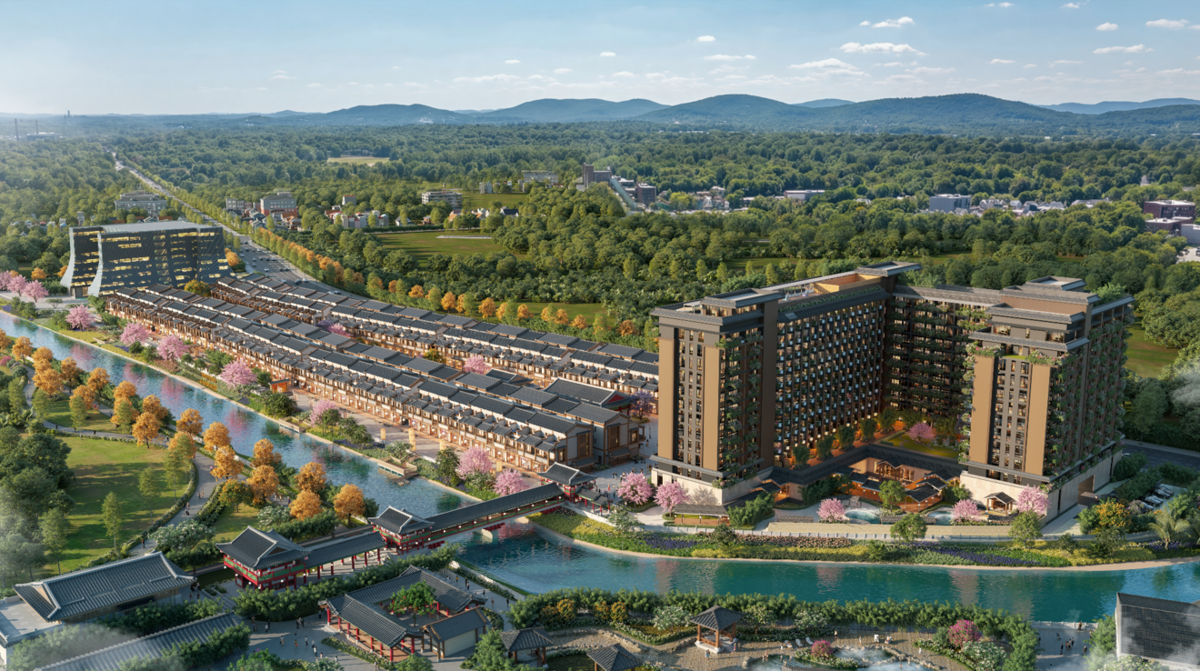Toàn cảnh tổ hợp nghỉ dưỡng khoáng nóng – trị liệu tại Diên Hà, Hưng Yên.