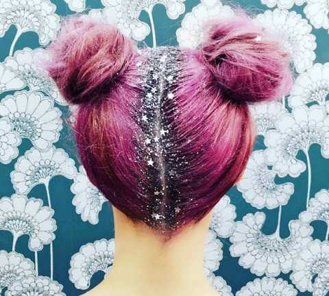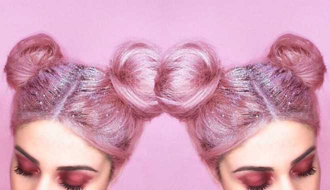 | Các hạt kim tuyến được coi là thủ thuật giúp tăng sức hút cho những mái tóc pastel. |