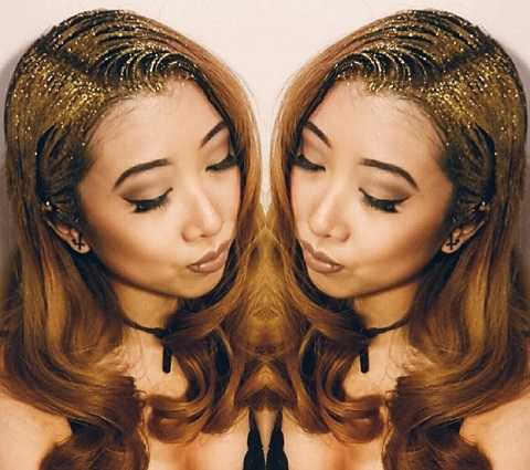 | Dù là màu tóc nào bạn cũng có thể áp dụng được phong cách này. Màu tóc đen nổi bật hơn nhờ kim tuyến màu trắng. |