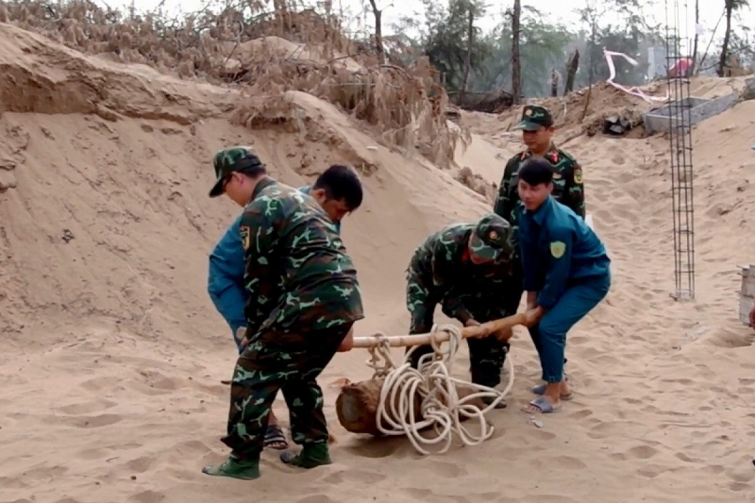 Ngày 6/3, lực lượng Công binh Bộ Chỉ huy Quân sự tỉnh Trà Vinh phối hợp với Ban Chỉ huy Quân sự thị xã Duyên Hải thu gom, xử lý an toàn một quả bom nặng hơn 150 kg còn nguyên ngòi nổ.
