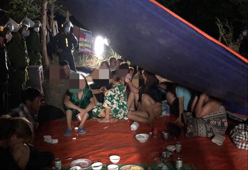 Khoảng 1h ngày 3/4, trong lúc tuần tra khu vực thôn 5, xã Hòa Phú (TP Buôn Ma Thuột), lực lượng công an phát hiện nhóm người gồm 16 nữ và 9 nam đang tụ tập ăn nhậu và mời họ về trụ sở Công an xã làm việc.