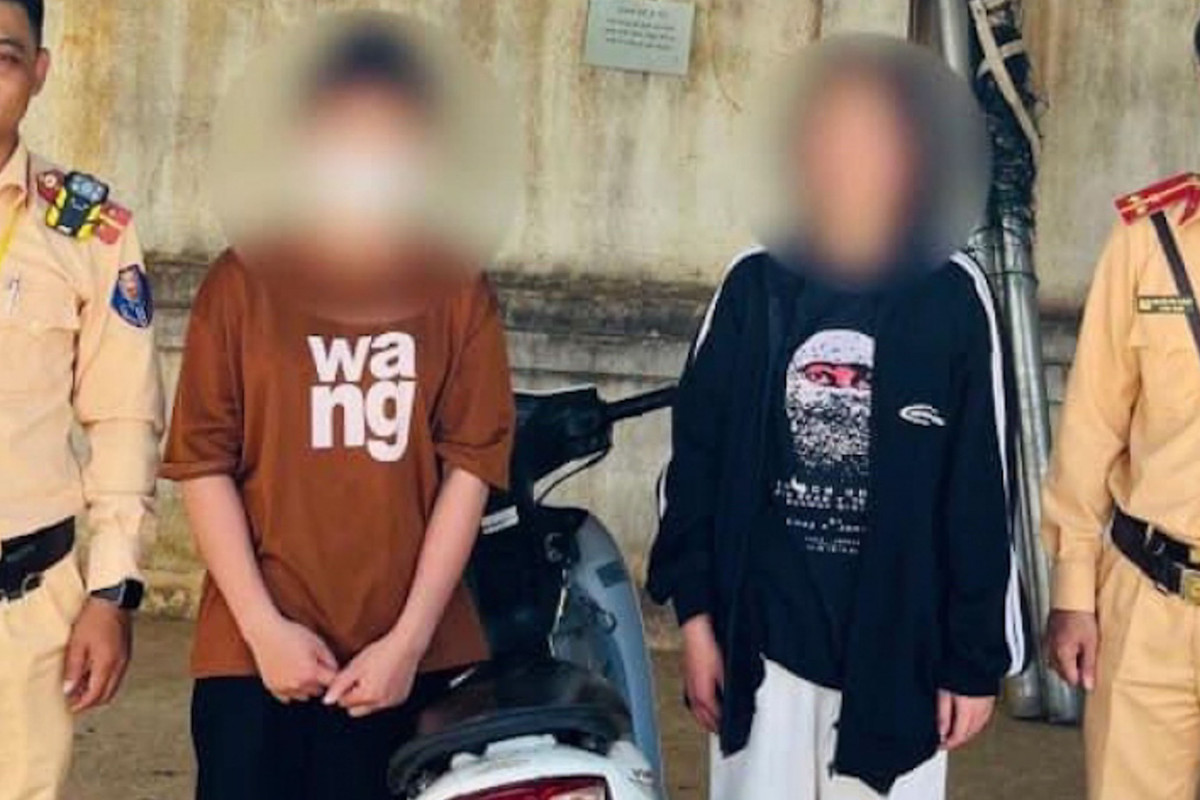 Qua đó, xác định 2 nữ sinh trên là L.T.H (sinh năm 2009) và Đ.T.N (sinh năm 2008), cùng trú tại bản Lưng, xã Chiềng En, huyện Sông Mã (Sơn La); H. và N. đã điều khiển xe mô tô không đội mũ bảo hiểm và chưa có giấy phép lái xe.