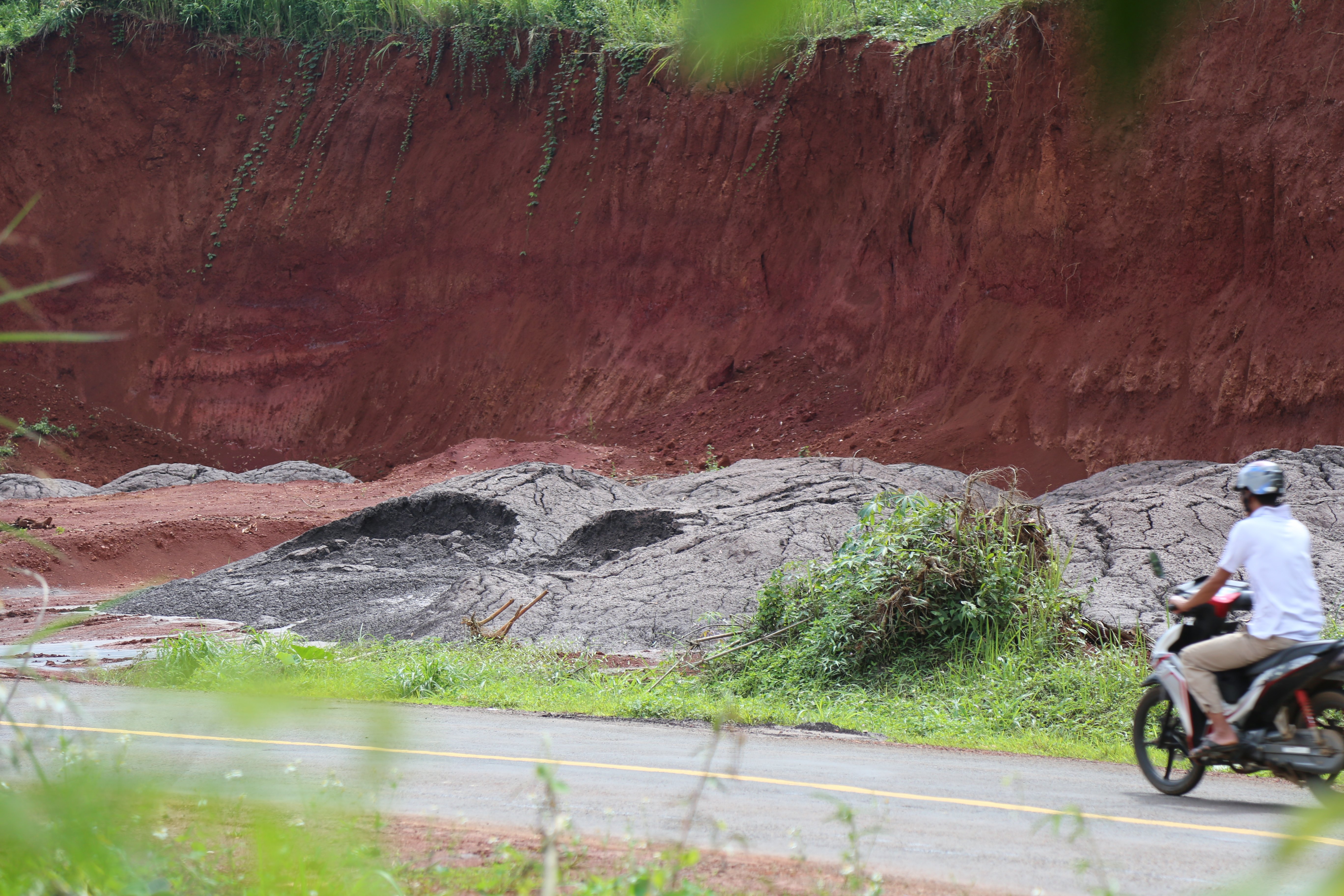 Theo ghi nhận, tại khu vực mỏ đá 4A (xã Đắk Nia) có nhiều đống bùn thải lớn đổ cách nhau vài mét, ước tính hàng chục tấn.