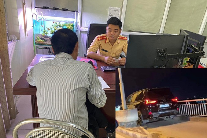 Đi xe vi phạm quy định, tài xế bị CSGT mời lên làm việc. Ảnh CTV