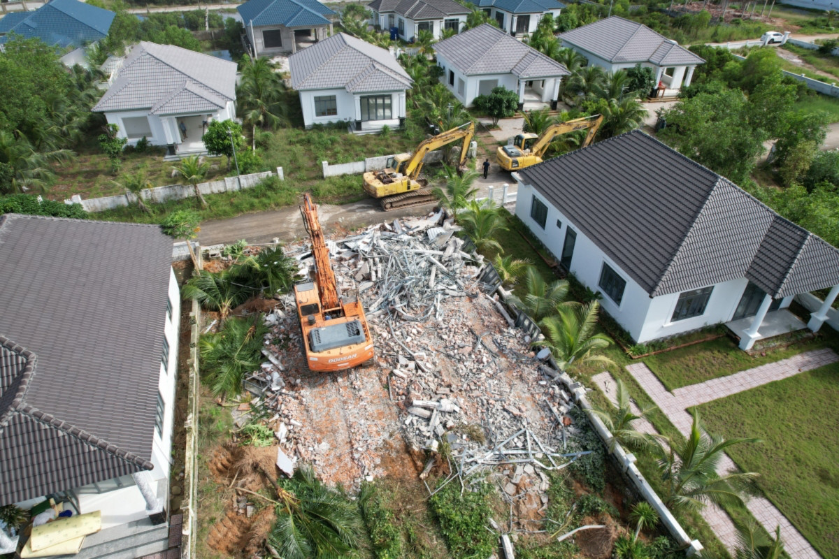 Cưỡng chế các căn biệt thự xây dựng trái phép trên đất nhà nước quản lý.