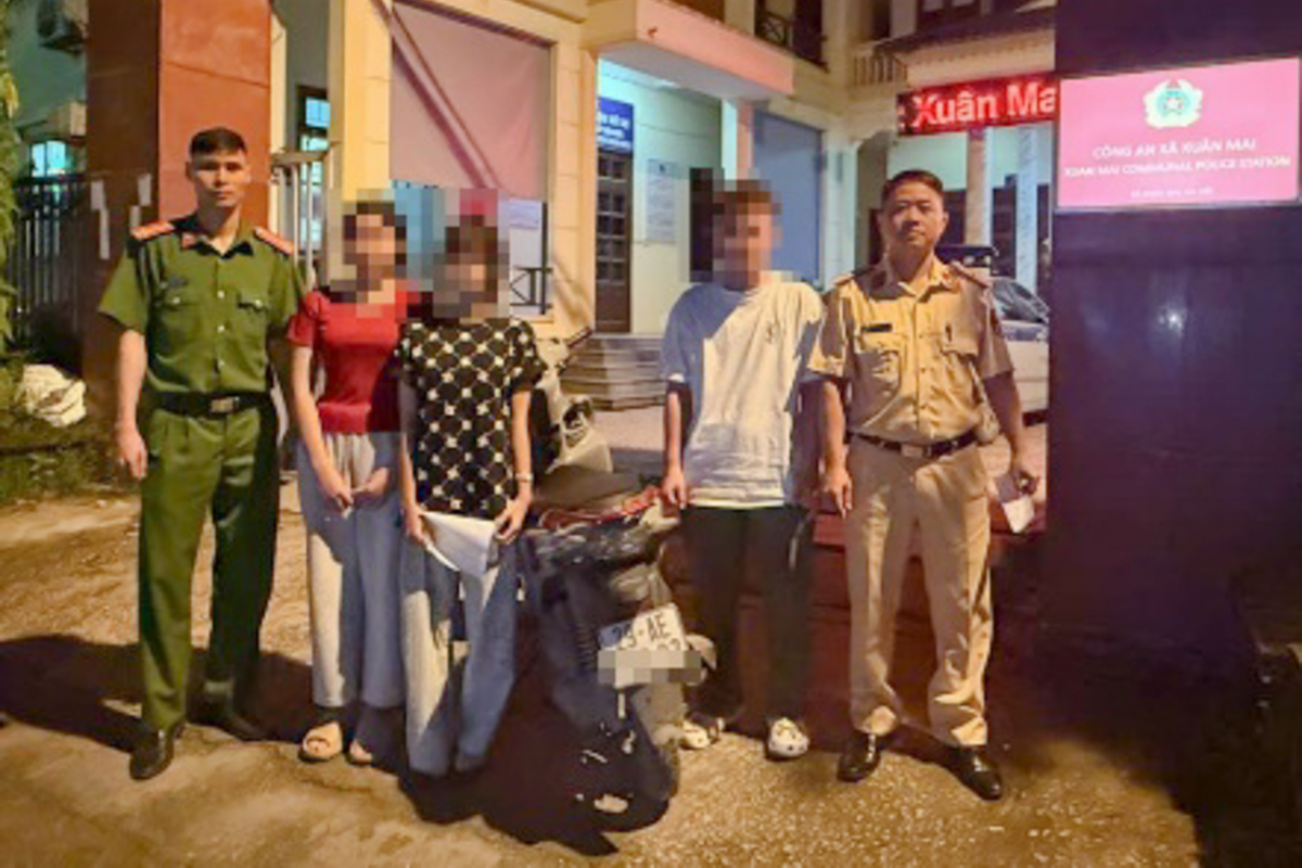 Theo đó, ngày 16/8, nhóm học sinh này lái xe máy trên đường khu vực Cầu Sắt (đoạn đi qua khu vực siêu thị Lan Chi, xã Xuân Mai) vừa không đội mũ bảo hiểm, vừa chở ba.