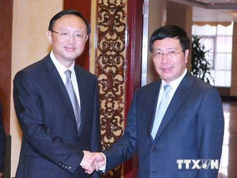 Phó Thủ tướng, Bộ trưởng Phạm Bình Minh khẳng định Việt Nam luôn coi trọng việc phát triển quan hệ đối tác hợp tác chiến lược toàn diện với Trung Quốc; nhấn mạnh hai bên cần triển khai hiệu quả những thỏa thuận đạt được trong chuyến thăm Trung Quốc của ông Lê Hồng Anh, Đặc phái viên của Tổng Bí thư Đảng Cộng sản Việt Nam (tháng Tám) về việc khôi phục giao lưu hợp tác, kiểm soát tốt những bất đồng trên biển, không có hành động làm phức tạp, mở rộng tranh chấp.