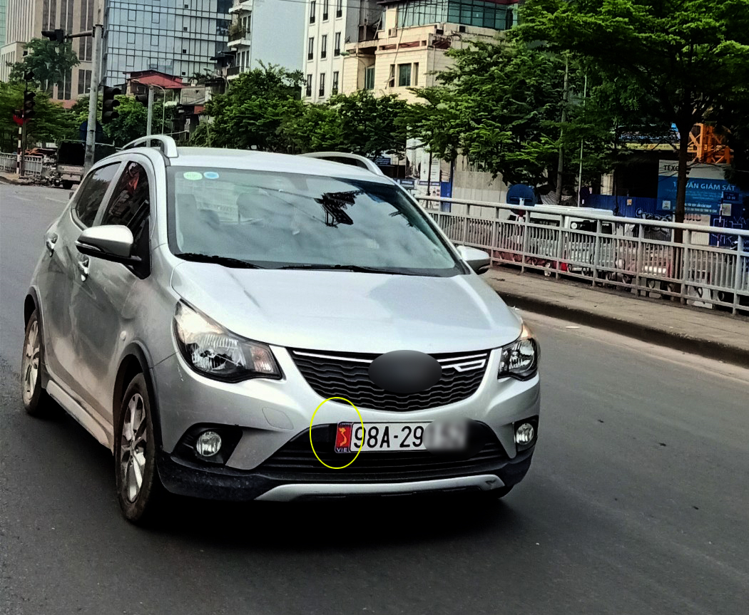 Một chiếc xe ô tô dán đề can bản đồ Việt Nam nhưng không có quần đảo Hoàng Sa, Trường Sa.