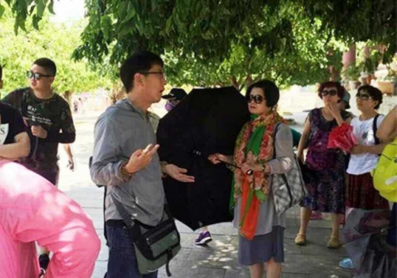 Người đàn ông tên Xue Chun Zhe xuyên tạc lịch sử Việt Nam khi dẫn đoàn khách Trung Quốc tham quan chùa Linh Ứng - (Ảnh: VnExpress).