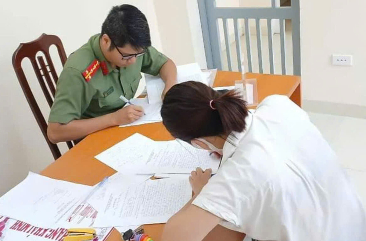 Công an huyện Đan Phượng làm việc với chị N.T.M.P. (Ảnh: T. Văn)